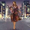 This long sleeve midi dress in a vibrant multi-purple pattern offers both style and comfort. The included belt cinches the waist for a flattering silhouette, while the midi length provides elegant coverage suitable for various occasions. Its breathable fabric ensures you stay comfortable throughout the day, making it a versatile addition to your wardrobe. Perfect for dressing up or down, this dress supports your confidence with effortless charm.