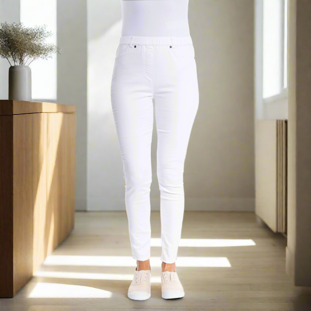 The Classic Jeggings by Café Latte in White are a popular and versatile wardrobe staple, perfect for those seeking comfort and style.