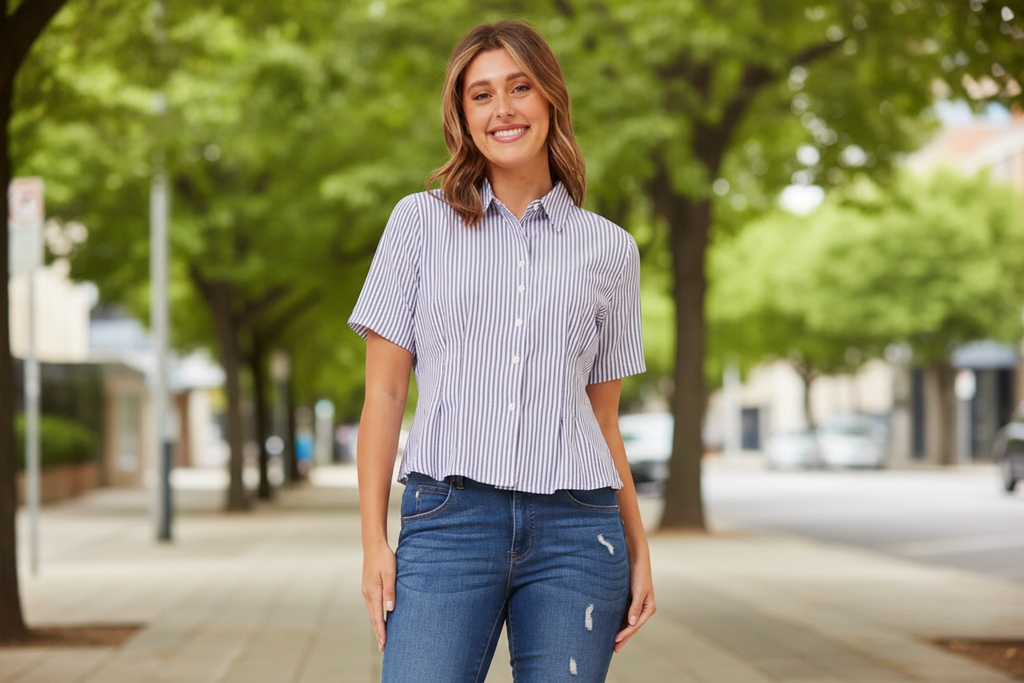 A flattering fit meets classic stripes in this pintuck shirt. Perfect tucked into trousers or paired with jeans for a clean, streamlined look.