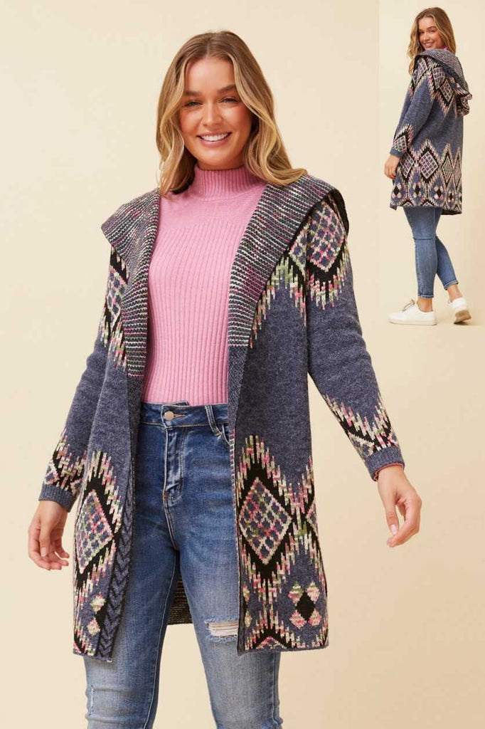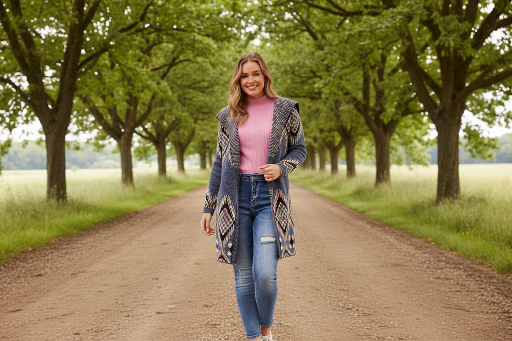 Elevate your casual wardrobe with this cosy long knit cardigan featuring a practical hood. Crafted from a blend of acrylic, nylon, and polyester, this piece offers durability and comfort for everyday wear. The extended length provides extra coverage, while the hood adds versatility for layering or stepping out. Perfect for cool Australian days, this blue cardigan transitions effortlessly from relaxed weekends to casual outings. Layer it over your favourite tee or dress it up with tailored pieces for a relaxed-chic look.