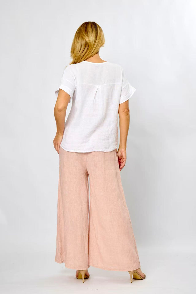 Elevate your warm-weather wardrobe with this refined linen mesh shoulder top in a serene white. Crafted from breathable 100% linen, this piece offers effortless sophistication with its delicate mesh detailing at the shoulders, creating an understated yet striking silhouette. Perfect for layering or wearing solo, it transitions seamlessly from casual daytime looks to evening occasions. The natural fabric ensures comfort in warmer climates while maintaining an elegant, relaxed aesthetic that complements any seasonal collection.