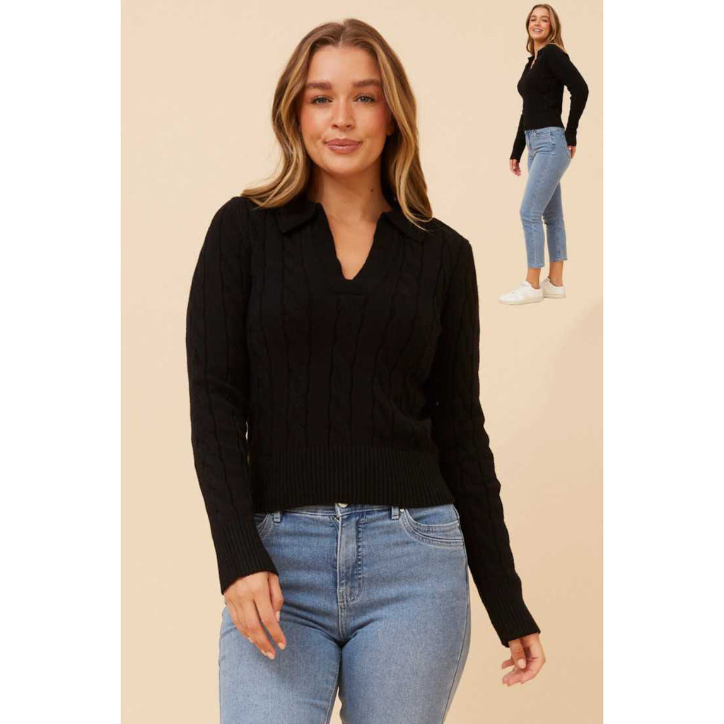 Cable Knit look Fitted Top - Black
