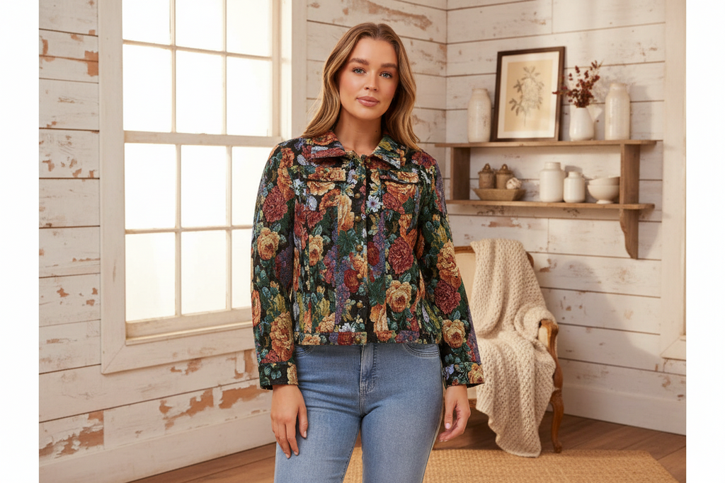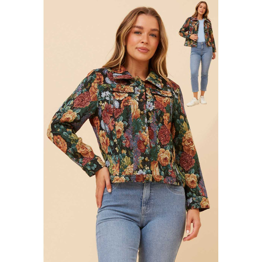 Make a statement with this charming cropped jacket that brings instant personality to any outfit. Featuring an eye-catching all-over print, it's the perfect layering piece for those who love colour and pattern. The cropped silhouette flatters beautifully while the cream base keeps things fresh and versatile. Throw it over dresses, tees, or tank tops for effortless style that works from brunch to night out. A playful wardrobe essential that proves jackets don't have to be boring.