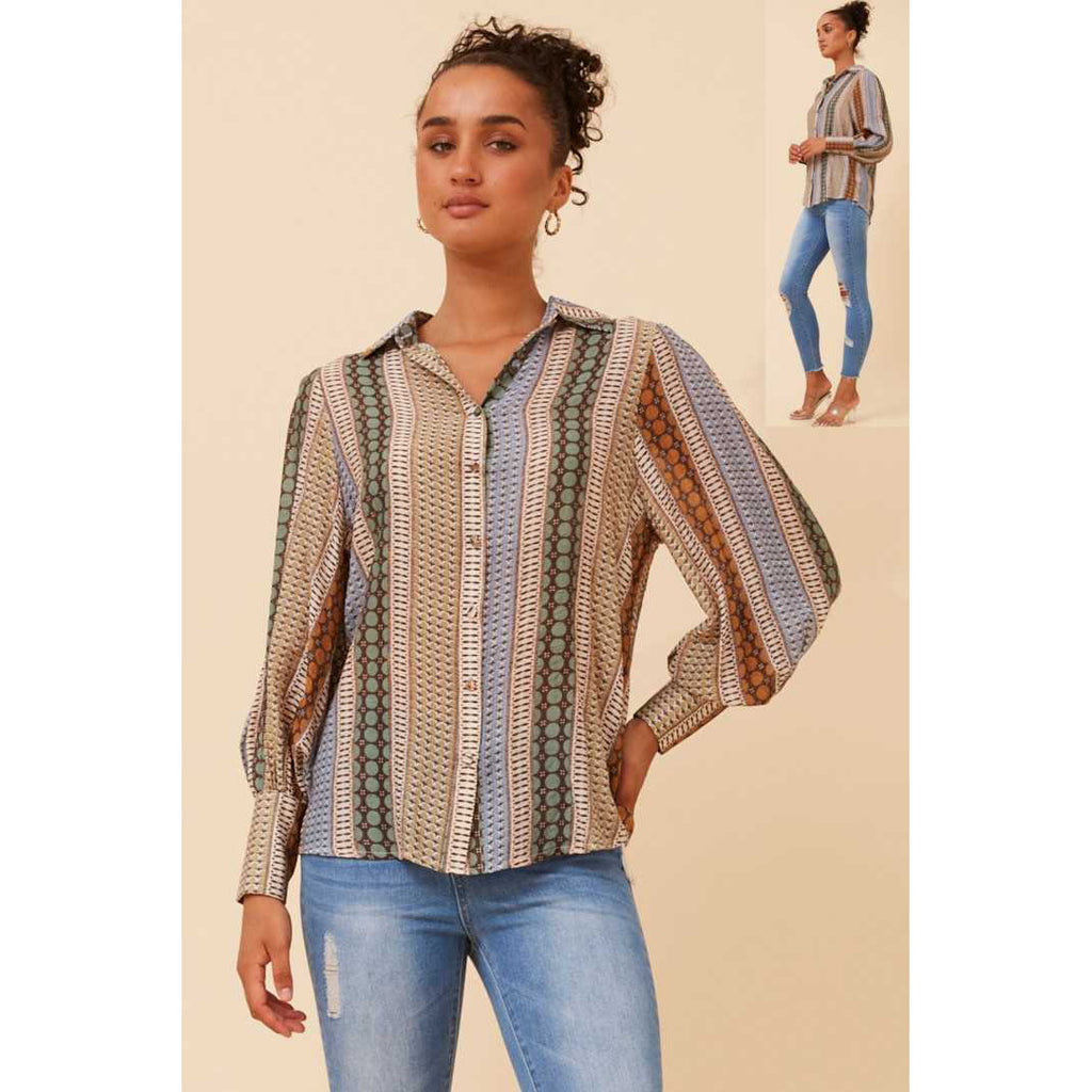 Striped Button Through shirt - Beige