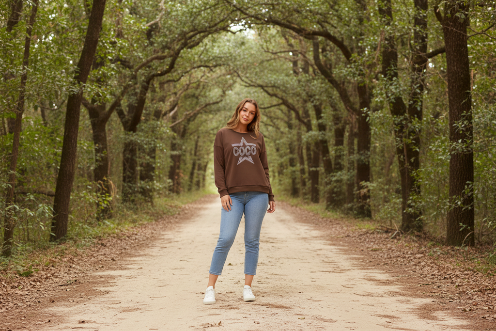 Effortless comfort meets everyday style with the Coco Star Long Sleeve Jumper in rich chocolate. Crafted from a cotton-polyester blend, this versatile piece offers the breathability of natural fibres with added durability and easy care. The relaxed fit and long sleeves make it perfect for layering or wearing solo through cooler months. A wardrobe essential that transitions seamlessly from casual weekends to relaxed workdays.