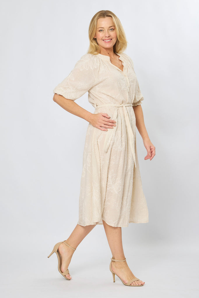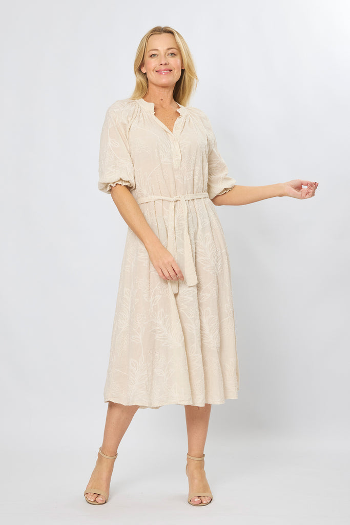 Slip into effortless elegance with this charming beige cotton dress, adorned with delicate embroidered details that add a touch of whimsy to your everyday wardrobe. Crafted from 100% pure cotton, it's breathable and comfortable for all-day wear, whether you're heading to brunch or a casual weekend outing. The intricate embroidery brings personality and texture, making this a versatile piece that pairs beautifully with sneakers or sandals. Perfect for those who love a bit of playful sophistication.