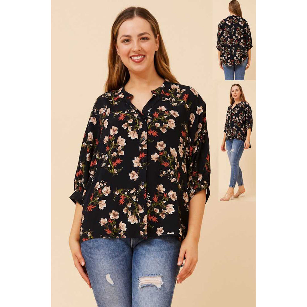 Floral Printed Shirt With 3/4 Sleeve -Navy
