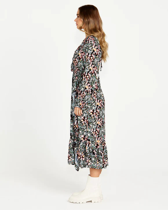 June Long Sleeve Midi Dress - Patchwork Floral