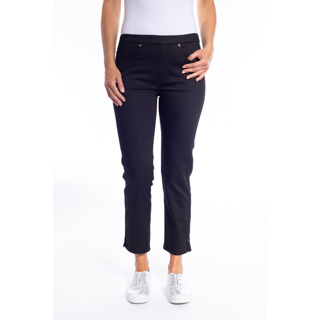 - These pants feature a pull-on style with an elastic waistband, which makes them easy to wear and comfortable throughout the day. The 7/8 length is a bit shorter than full-length pants, providing a modern, cropped look that's versatile for various occasions.