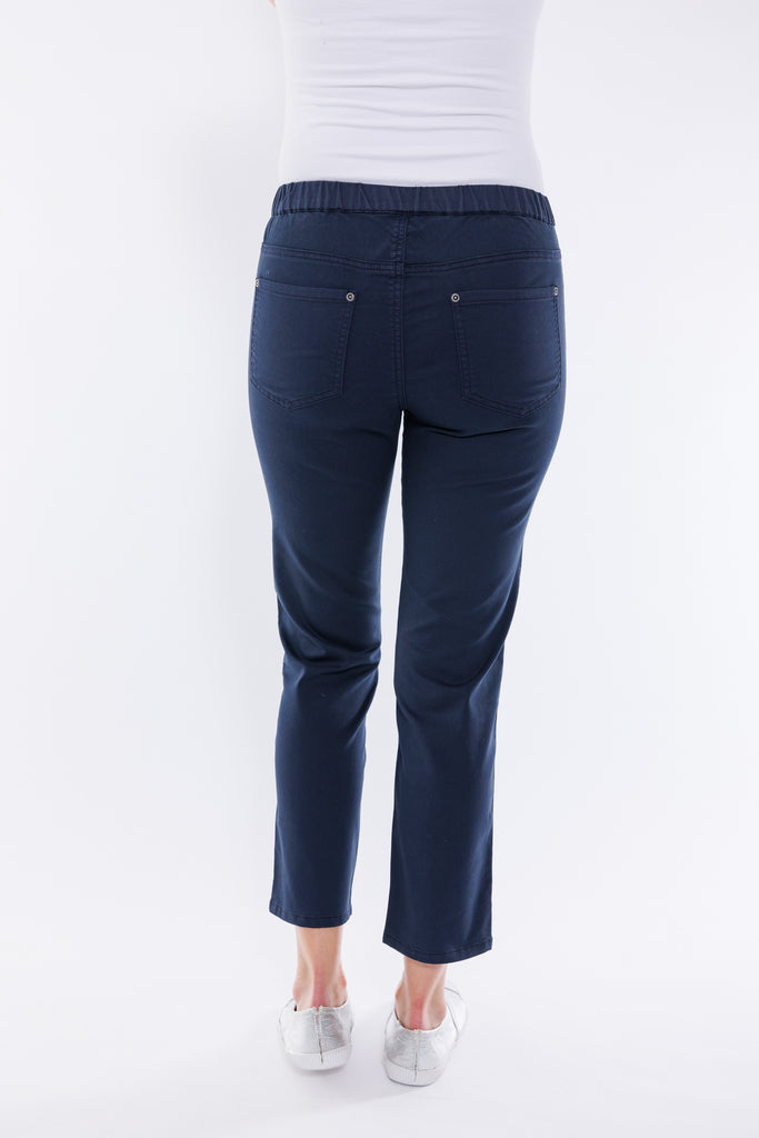 The cropped jeans by Café Latte in Navy are designed to offer both comfort and a sleek, stylish look.