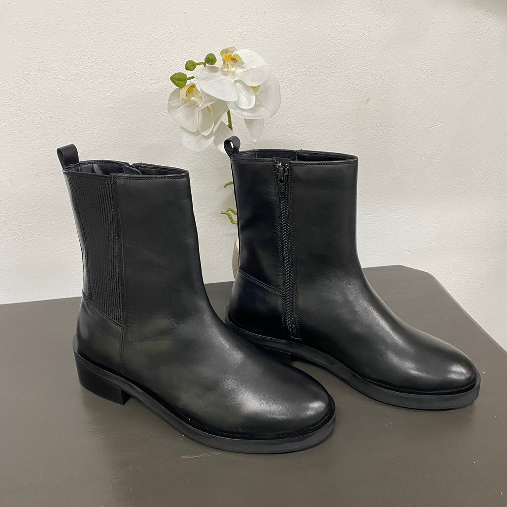 Humidity boots have been designed with comfort and style as a priority – the little extras we’ve added count. The zip access means no pulling on and off – just slide your foot in and out, too easy! This combat style is on trend and can be worn all day. All our boots are designed to be comfortable from the first wear – no wearing them in. The flat but slightly thicker heel will offer some extra height and elevate your look. We suggest spraying them with a leather protectant and polishing in-between and (if looked after) they should last for many seasons ahead.